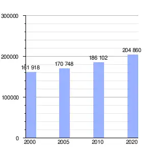 | Gráfica de evolución demográfica de Municipio de Zamora entre 2000 y 2020 |
