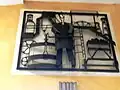 Por su parte el tercer mural se centra en la minería y la siderometalurgia, aparece en él una industria siderúrgica y una extracción minera, las cuales flanquean al trabajador anónimo, situado en el centro de la composición, combinando superficies cóncavas y convexas con una falta de huecos, lo que sucede es contrario a lo ocurrido en los anteriores murales en el resto, donde predomina el vacío.[1]