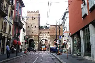 - en la parte norte de Carrobbio, parcialmente envuelto en los edificios modernos: una parte de la torre del siglo I de Porta Ticinese;
