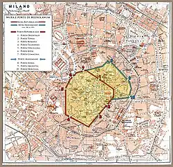 Las murallas medievales de Milán se construyeron en el siglo XII, principalmente como defensa contra Federico I Barbarroja, que asaltó repetidamente Lombardía. El perímetro de las murallas medievales corresponde esencialmente a lo que hoy se conoce como "Cerchia dei Navigli" ("Anillo de Navigli"), un anillo de calles que encierran el centro histórico de la ciudad.