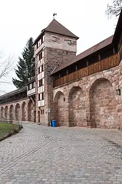 - ↑ «Mauern, Türme und Bastionen – Ein Streifzug entlang der Nürnberger Stadtmauer ǀ GESCHICHTE FÜR ALLE e.V.». www.geschichte-fuer-alle.de. Consultado el 28 de agosto de 2022.