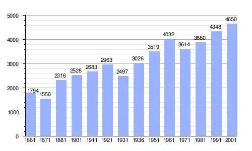 | Gráfica de evolución demográfica de Muravera entre 1861 y 2001 |