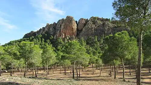 Las montañas que encajonan el valle en sus lados norte y sur están compuestas de materiales geológicos pertenecientes al Sistema Bético. En la vertiente norte aparece el denominado reborde interior de la depresión prelitoral, formado por una sucesión de suaves colinas, constituidas por areniscas y margas, restos de la sedimentación miocénica que queda en forma de resalte como consecuencia del hundimiento de la depresión del Segura. Sus alturas son modestas y aisladas, que rondan los 200 m de altitud, que hacen de límite con el término de Molina de Segura.[27]