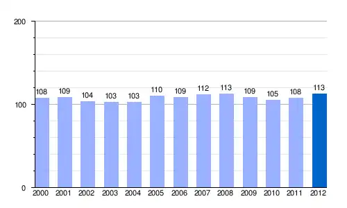| Gráfica de evolución demográfica de Murias de Rechivaldo[2] entre 2000 y 2012 |