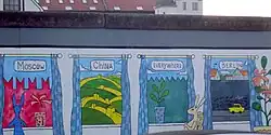 El Muro de Berlín (en alemán: Berliner Mauer, pronunciado /bɛʁˈliːnɐ ˈmaʊ̯ɐ/ (escuchar)) fue un muro de seguridad que formó parte de la frontera interalemana desde el 13 de agosto de 1961 hasta el 9 de noviembre de 1989. Rodeaba y separaba la zona de la ciudad berlinesa encuadrada en el espacio económico de la República Federal de Alemania (RFA), Berlín Oeste, de la capital de la República Democrática Alemana (RDA), Berlín Este, entre esos años.[1]​ Es el símbolo más conocido de la Guerra Fría y de la división de Alemania.[2]​ Este muro era denominado Muro de Protección Antifascista (Antifaschistischer Schutzwall)[3][4]​ por la RDA, mientras que los medios de comunicación y parte de la opinión pública occidental se referían a él como Muro de la Vergüenza (Schandmauer).[3][5]