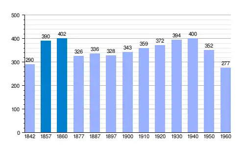 | Gráfica de evolución demográfica de Muro de Roda[8] entre 1842 y 1960 |