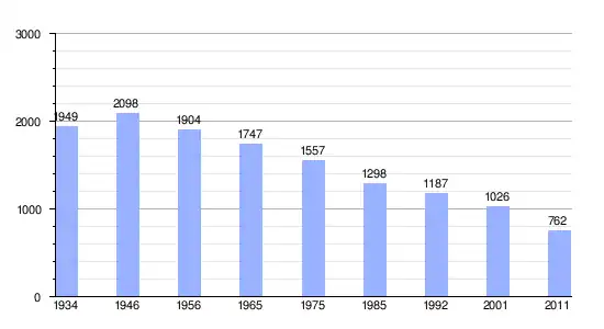 | Gráfica de evolución demográfica de Muselíevo entre 1934 y 2011 |