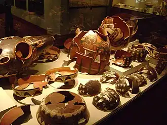 Las prácticas ceremoniales y los rituales asociados a los entierros o a los momentos constructivos están representados por una importante colección de cabezas-trofeo y de ofrendas de distinta naturaleza, además de la reconstrucción de una tumba conteniendo un fardo original.