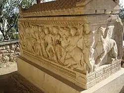 Sarcófago romano donde se representa la caza del jabalí de Calidón.