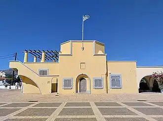 Se encuentra en un ala de un edificio catalogado como histórico construido durante la ocupación italiana del Dodecaneso (1926-36).