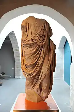 La pieza más relevante del conjunto de esculturas exentas en mármol es una cabeza femenina de estilo helenístico con una fuerte tradición clásica. Dentro de la estatuaria romana, es la pieza más antigua del museo.