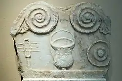 Parte de un altar de época romana con símbolos del culto a Isis.