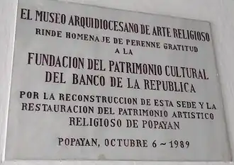 - ↑ «Museo de Arte Religioso – Arquidiócesis de Popayán». Consultado el 5 de julio de 2022.
