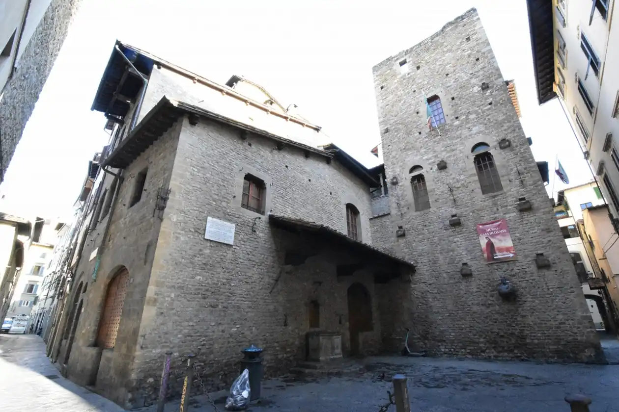 El actual museo incorpora algunas casas medievales, como una de las dos Torres de los Giuochi. La familia Giuochi estaba cerca de la casa de los Alighieri, y la casa de éstos es descrita (sin certeza) como una edificio destruido que surgía en la plaza San Martín, al lado de la Torre della Castagna, en la actual Via dei Magazzini.