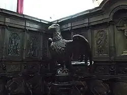 Los sitiales proceden del coro de la capilla del Colegio de San Gregorio (una de las sedes del Museo Nacional de Escultura). Las puertas que se hallan distribuidas por varias capillas del Museo formaron en su día los respaldos de la sillería hispano flamenca de la Colegiata.