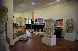 Contiene una colección de piezas arqueológicas iniciada en 1974 con materiales hallados en las tierras del término municipal, procedentes de las distintas excavaciones arqueológicas realizadas o de circunstancias fortuitas y de la adquisición de piezas en posesión particular. La muestra abarca desde los tiempos prehistóricos hasta materiales medievales, renacentistas y modernos. Destacan los fondos neolíticos de la Cueva de las Palomas, los restos del Bronce Final e íberos del yacimiento arqueológico de Los Castillejos, los materiales romanos del Cortijo del Tajo (especialmente varios soberbios pedestales, un togado y un retrato del emperador Tiberio), y los procedentes de Nina Alta.[2]