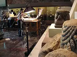 Antropólogos trabajando en la sala Mexica.