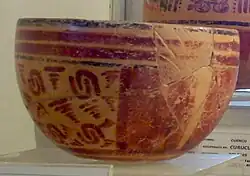 Este elemento (número de catálogo PSPA-625) es un jarrón cerámico excavado de las ruinas de Curucuitz.[11] Se encontró enterrado en la estructura del norte del Grupo 24, donde está asociado con un entierro. El jarrón ha sido datado al período clásico tardío y es de la variedad Paixbán del grupo cerámico policromo Paixbán Ante, perteneciendo al grupo cerámico Zacatal-Joyac.