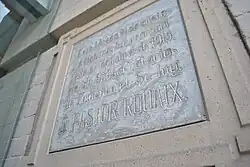 Placa conmemorativa: "Este Museo N. de Historia Natural fue reorganizado en octubre de 1915 siendo Subsecretario de Fomento el Sr. Ing. D. Pastor Rouiax"