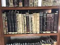 Libros en la Biblioteca - La biblioteca resguarda 4,800 volúmenes, todos escritos en latín y español antiguo, sus temas son religiosos, algunos conservan sellos de diversas órdenes religiosas.[5]