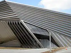 La fachada angular está compuesta de acero inoxidable plisado y vidrio y fue concebida para darle al edificio "una apariencia en constante cambio que despierta curiosidad pero nunca revela su contenido". (Zaha Hadid Arquitectos).[15] El setenta por ciento de los 46 000 pies cuadrados (4273,5 m²) está dedicada a espacio expositivo.[16]