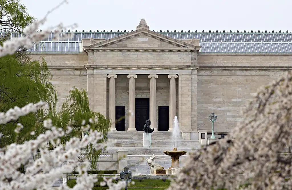 Un réplica en bronce de El pensador, de Auguste Rodin, preside la escalinata de la fachada principal del museo. Lo singular de esta obra de Rodin es que fue dañada por un atentado con explosivos en 1970, posiblemente en señal de protesta por la guerra de Vietnam; los responsables del museo optaron por no repararla y mantenerla expuesta tal cual, como testimonio de aquella convulsa época en el país.[5]