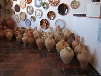 ![]() Colección de cántaros y platos de cerámica en el Museo de Chinchilla de MonteAragón (Albacete), España. | ||