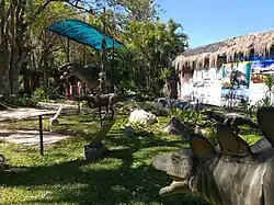 Se ubica en un espacio abierto rodeado de plantas y un gran lago, los cuales están acompañados de una variedad en modelos de especies prehistóricas de diversas categorías y eras, acompañadas de carteles y leyendas con información sobre estas especies y sus respectivas eras.