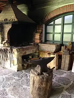 En la sala medieval se ha construido una herrería con su fragua de mampostería tal y como era común en la comarca. Junto a ella se ubican utensilios y herramientas propias de la labores de herrería para la fabricación de productos diversos como herraduras, rejas, clavos, aperos de labranza, armas y utensilios de uso doméstico. Junto a la herrería, se complementa la sala con una serie de máquinas de accionamiento manual como un torno a pedal, un enderezador de cañones de escopeta y el taladro de sobremesa de accionamiento manual y avance por bolas y otras similares.