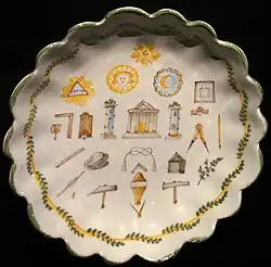 - ↑ «Tablier de Voltaire (tablier d'Helvétius en peau d'agneau, offert à Voltaire le jour de son initiation)» (en francés).