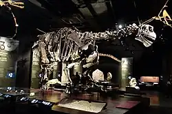 - Orígenes, historias del mundo tiene en particular los esqueletos de un mosasaur y un Camarasaurus, pero también meteoritos;[16]