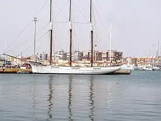 ![]() El pailebote Pascual Flores, que forma parte del "museo flotante", en el puerto de Torrevieja en el año 2017. | ||