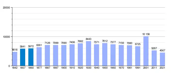 | Gráfica de evolución demográfica de Mugía[6] entre 1842 y 2021 |