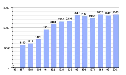| Gráfica de evolución demográfica de Muzzana del Turgnano entre 1861 y 2001 |