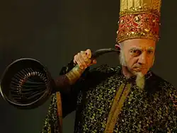 Ramón Agirre interpreta a Ambrosius, uno de los tres grandes hechiceros que custodian las vasijas. Su poder es increíble, pero su sordera y su labia le pierden, y su única función es la de desconcertar a los salvadores.