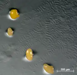 | Varias especies mixobacterias bosquejadas por Roland Thaxter en 1892: Chondromyces crocatus (Figuras 1-11), Stigmatella aurantiaca (Figs. 12-19 y 25-28), Melittangium lichenicola (Figs. 20-23) Archangium gephyra (fig. 24), Myxococcus coralloides (Figs. 29-33), Polyangium vitellinum (Figs. 34-36), y Myxococcus fulvus (Figs. 37-41).[6] Thaxter fue el primer taxónomo en reconocer la naturaleza bacteriana de Myxobacteria. Anteriormente, habían sido clasificados como miembros de los "hongos imperfectos". | |||