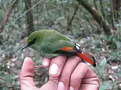 - ↑ BirdLife International (2012). «Myzornis pyrrhoura». Lista Roja de especies amenazadas de la UICN 2012.2 (en inglés). ISSN 2307-8235. Consultado el 22 de julio de 2013.