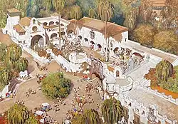 - Colaboración con su hermano Miguel en el diseño del edificio y de su decoración interior. Al igual que con los bocetos que realizó para el Pueblo Canario, que años más tarde serían materializados con gran fidelidad, estos esbozos están animados por la viveza de las escenas típicas que se representan en ellos y por el colorido de las tintas utilizadas. Néstor no se limitó a realizar unos bocetos técnicamente fríos, sino que en ellos, frito de su imaginación, ya plasmaba los edificios terminados y cumpliendo la función para la que iban a ser destinados.