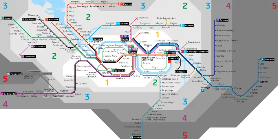 | Sistema de transporte público y zonal de Bizkaia (CTB) | ||