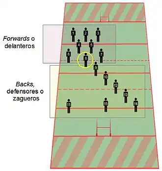 - ↑ trad: por Félix Villegas. «Reglamento de Juego del Rugby». Federación Vasca de Rugby, 2007. p. 5. Archivado desde el original el 4 de marzo de 2016. Consultado el 26 de enero de 2008.
