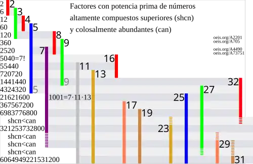 - ↑ Weisstein, Eric W. «Superior Highly Composite Number». mathworld.wolfram.com (en inglés). Consultado el 5 de marzo de 2021.