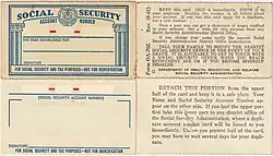 Las tarjetas de Seguro Social impresas desde enero de 1946 hasta enero de 1972 establecían expresamente que las personas no debían utilizar el número ni la tarjeta para identificación.[18] Dado que casi todas las personas en los Estados Unidos ahora tienen un SSN, resultó conveniente usarlo de todos modos y el mensaje fue eliminado.[19]