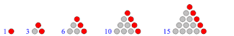 | Los cuatro primeros tipos de números poligonales: números triangulares, cuadrangulares, pentagonales y hexagonales |