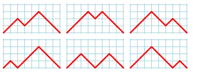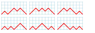 Las siguientes figuras representan los números de Narayana , ilustrando las simetrías mencionadas anteriormente.