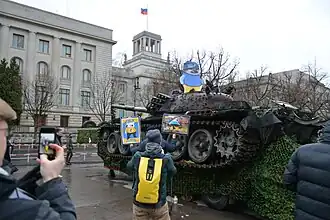 - ↑ a b Gault, Matthew (30 de agosto de 2022). «NAFO Memesters Paid Ukraine to Paint Their Memes on a Tank». Vice. Archivado desde el original el 30 de agosto de 2022. Consultado el 30 de agosto de 2022.
