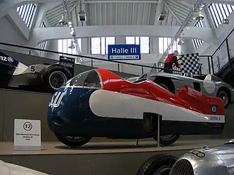La motocicleta aerodinamizada NSU Delphin III estableció el récord de velocidad de motocicletas en 1956. Wilhelm Herz la condujo a 340.2 kilómetros por hora (211.4 mph) en la pista de carreras Bonneville Speedway en Utah, rompiendo los 320 kilómetros por hora (200 mph) por primera vez.[5] Su carenado, diseñado en un túnel de viento en la Universidad de Stuttgart (en ese entonces Colegio Técnico de Stuttgart), obtuvo un coeficiente de arrastre de 0.19.[1] El mismo motor impulsó a Hertz a un récord mundial de velocidad en 1951, con un marco/carenado menos eficiente, el Delphin I.[4] El motor utilizó un inusual sobrealimentador vinculado al eventual desarrollo de NSU del motor Wankel.[6][7] En el sobrealimentador, tanto un rotor interno trocoidal como un rotor externo epitrocoidal giraban alrededor de un eje estacionario.[7]