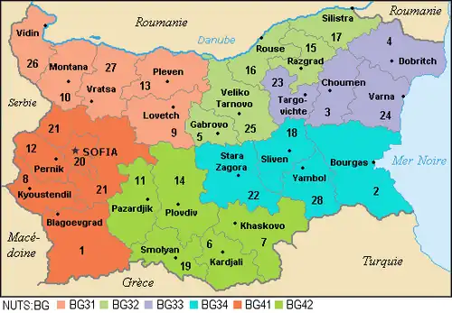 Los códigos NUTS de Bulgaria se dividen en tres niveles:[1][2]