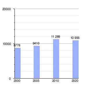 Cuenta con 10 956 habitantes lo que representa un decrecimiento promedio de -0.31% anual en el período 2010-2020 sobre la base de los 11 289 habitantes registrados en el censo anterior. Ocupa una superficie de 5.227 km², lo que determina al año 2020 una densidad de 2096 hab/km².[7]