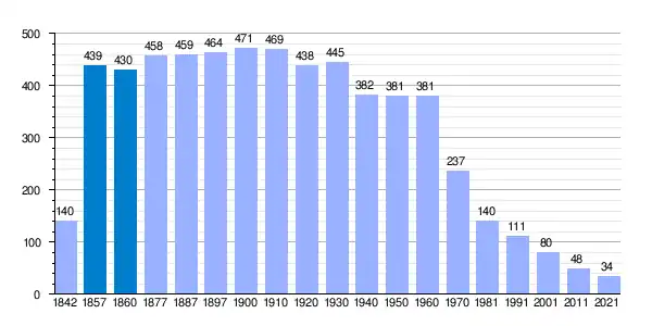 | Gráfica de evolución demográfica de Nafría de Ucero[7] entre 1842 y 2021 |