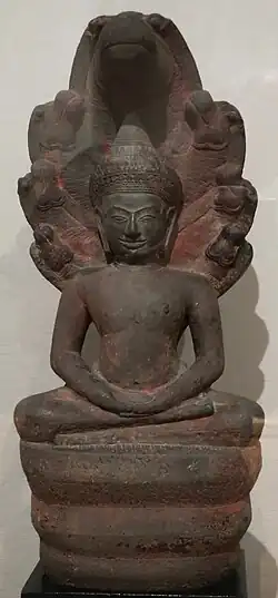 Entre los nagas notables de la tradición budista se encuentra Muchalinda, nagaraja y protector del Buda. En el Sutra Vinaya (I, 3), poco después de su iluminación, el Buda está meditando en un bosque cuando se levantó una gran tormenta. Amablemente, el rey Muchalinda dio cobijo al Buda de la tormenta cubriendo su cabeza con sus siete cabezas de serpiente.[13] A continuación, el rey adoptó la forma de un joven brahmán y rindió homenaje al Buda.[13]